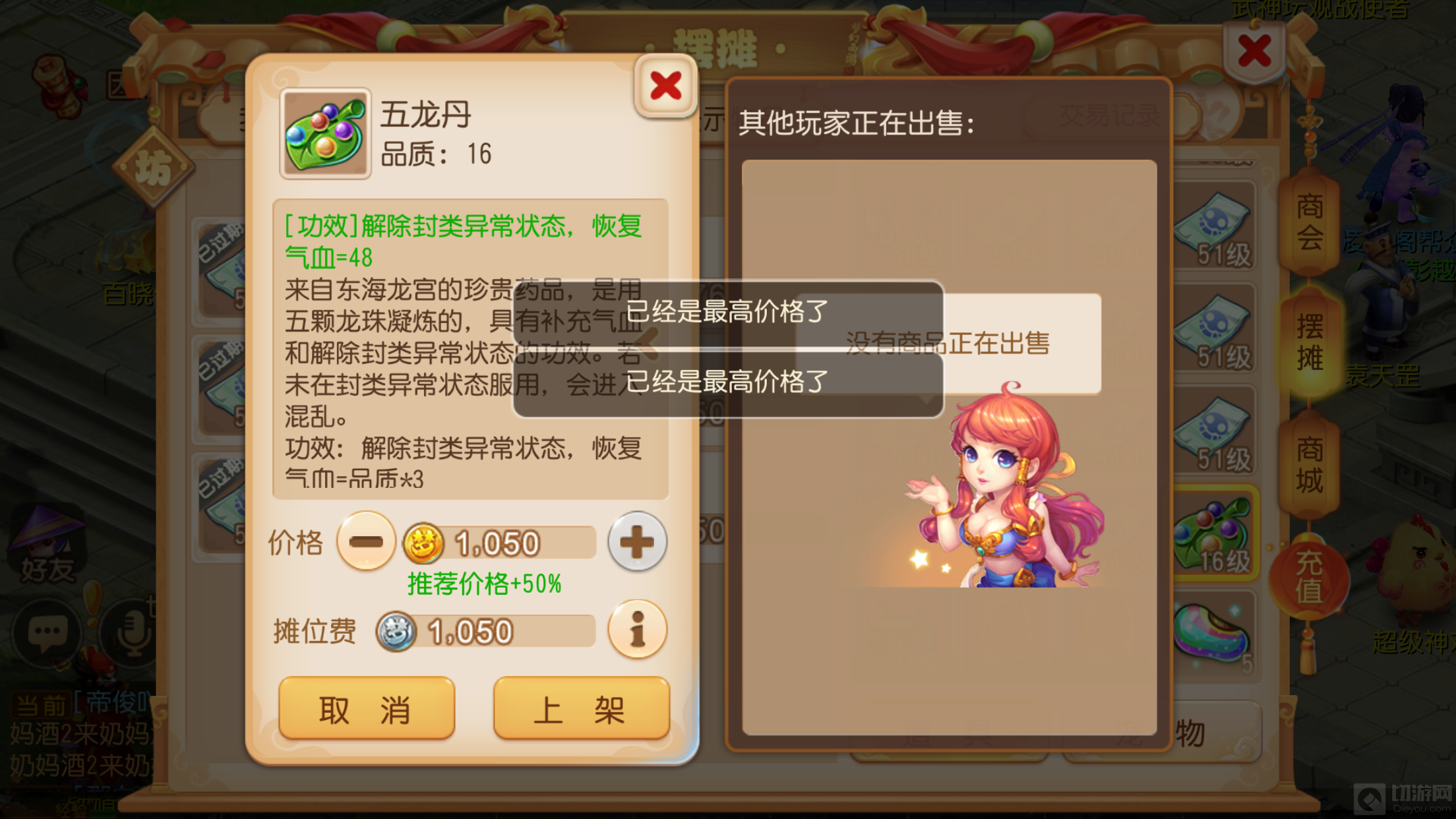 2.其他就不要考虑了,这些是很快就能变现的,一周后看时机出手,正常五龙1000 烹饪800 蛇胆1800没有太大问题(开环和PK后更是稀缺)。