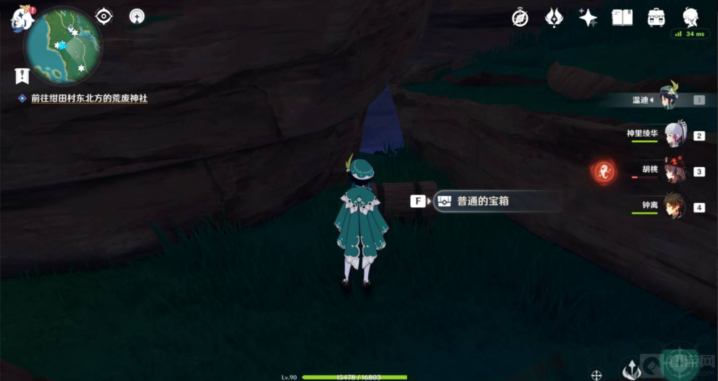 15.做到这里后先别着急离开,远处也有一个若雷结界遮挡的地方,进入探索可以拿到宝箱、神瞳,以及一个后面「祭神奏上」任务中解锁铁门拾取神瞳需要用到的道具「锈蚀的钥匙」。