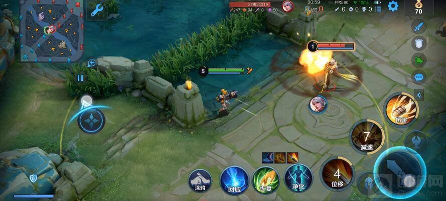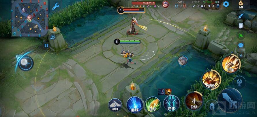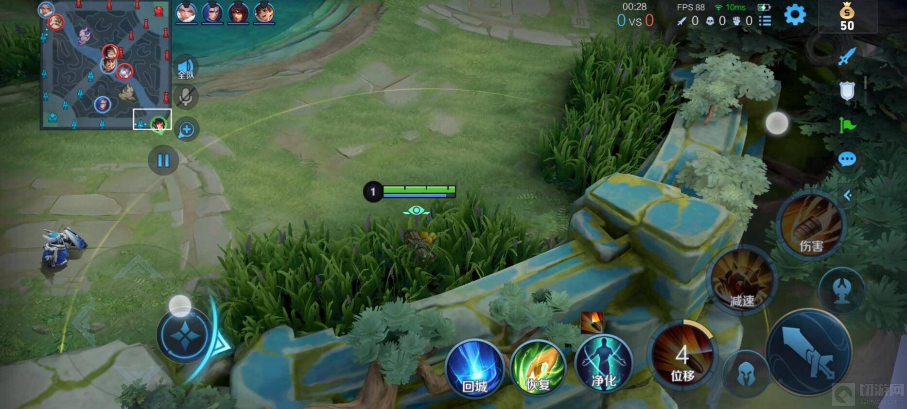 1,开局携带净化,点一技能,买一把铁剑,且利用一技能一直翻滚快速上线。