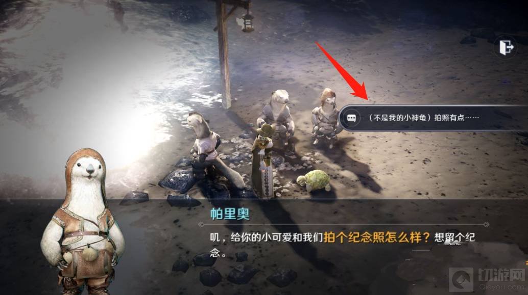 3、跟随任务指引,与海獭族和商人杜塔普对话,很快即可获得可爱的小神龟。