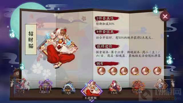1.攻攻暴:与涂佛的被动叠加,伤害增加。御魂搭配:招财、涂佛。在所有御魂里,招财算是比较适合千姬的一种。利用千姬的回火和增伤效果,在各种副本都能作为一个不错的辅助输出位来打。