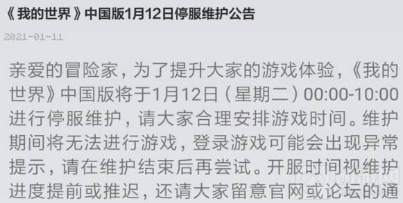 我的世界正在维护怎么办? 有些小伙伴对这方面不够了解。接下来让为大家介绍方法,能帮到大家。 我的世界正在维护解决办法如下: 1.游戏在维护,因为在维护所以才进不了游戏的,游戏在更新的时候会发布公告,不