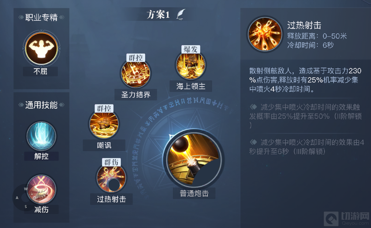 其他的连招也可以根据自身如何携带技能,例如可以自行搭配技能以高射列队—火力全开—压制炮击—川投炮击来打输出