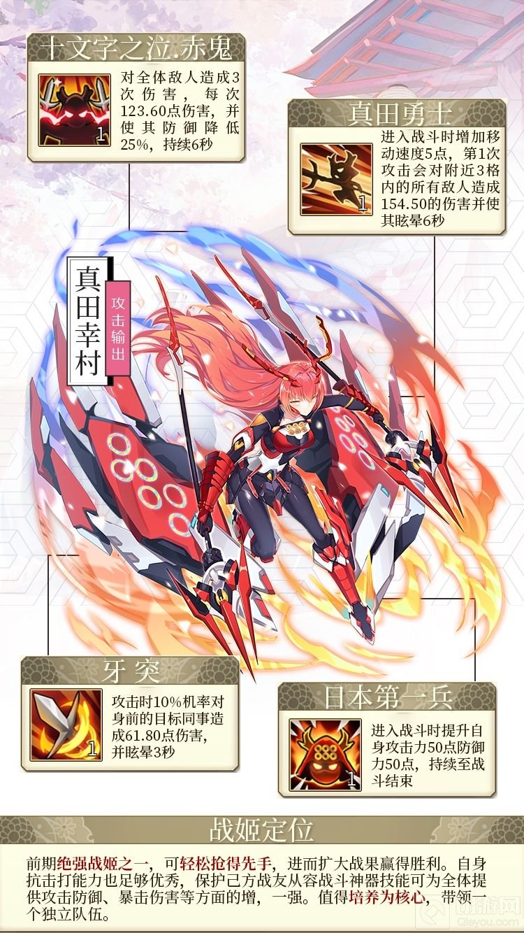 前期绝强战姬之一,可轻松抢得先手,进而扩大战果赢得胜利。自身抗击打能力也足够优秀,保护己方战友从容战斗神器技能可为全体提供攻击防御、暴击伤害等方面的增,一强。值得培养为核心,带领一个独立队伍。
