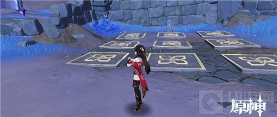 2、按照左下角第一第二,石碑前面第一,右上角第一第二,中间下面第一的顺序踩,中间斜着一排不要踩。如图: