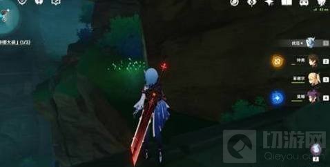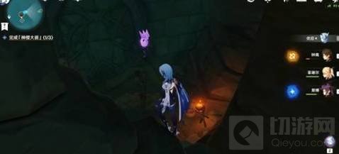 6、接着沿着这地方飞檐走壁,就可以找到神瞳啦,顺带一提,神瞳下边有一个小狐狸雕像可以扫,可以得一个圣遗物狗粮和一段对话。