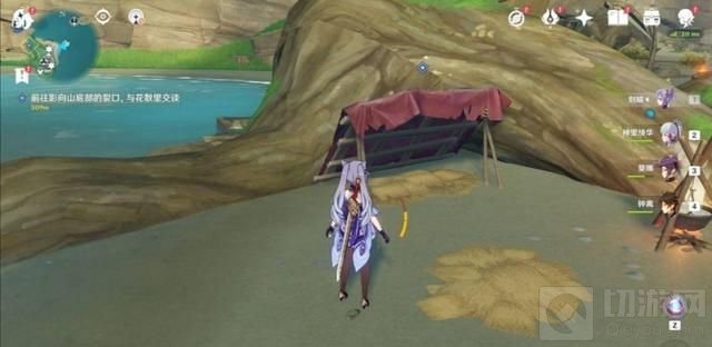 2.第二块石板位置在神里屋敷东北边的浪船锚点,与这里的简易棚子互动