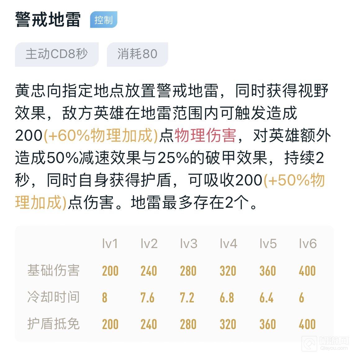 黄忠在开启大招的时候,如果再次点击大招,收起炮台大约需要1秒钟左右,而使用一技能可以瞬间收起炮台,并且增加移速。二技能可以用来探草的,前期对线的时候放在靠近河道的草丛里,走河道来支援的敌方中野碰到地雷即暴露视野。