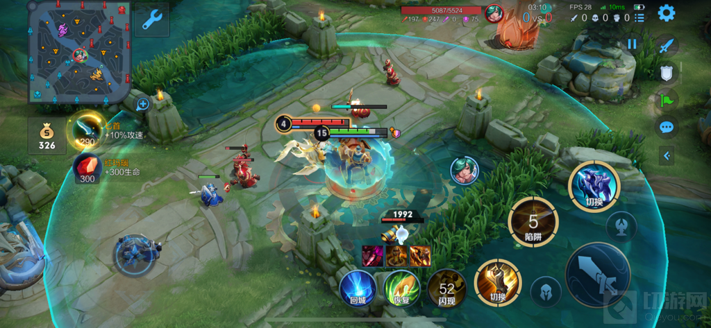 四级后便可压塔啦!架起炮台的黄忠气势汹汹,被动技能效果增加的暴击率和攻击都会翻倍,有天然的压塔优势。不过要注意对面中野动向,小地图上一旦多人视野丢失,千万要多加小心!
