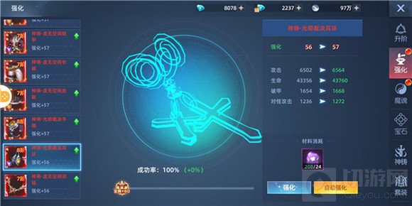 装备强化对于玩家老爷们应该是比较熟悉的培养方式了,游戏内几乎各个玩法都会爆出强化石,当我们攒够足够的强化石后,只需要点击【自动强化】,就可以享受战力飞升的快感了