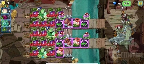 推荐阵容:熊果激光豆速刷阵,因为海盗无尽陆地僵尸集中聚集在2 4两路,所以排队比极长,激光豆的超远距离攻击和高伤害配合熊果大招,可以帮助我们快速进行过波。