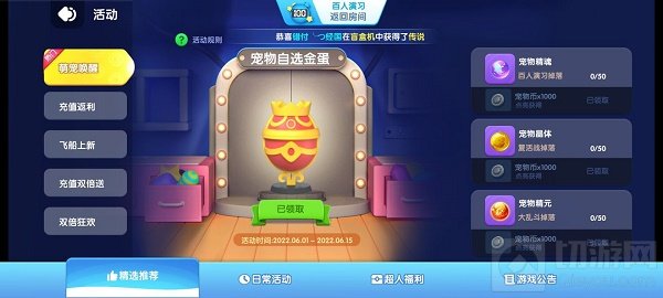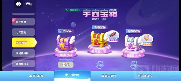 2.如果你认为这几个宠物不强那就要做下面的任务啦 宇宙飞船里的宇宙宝箱每天拉满(都是免费水晶开启的,搞里头),有机会出高级宠物宝箱,高级宝箱可以开出好的宠物碎片。路径:活动-日常活动-宇宙宝箱。