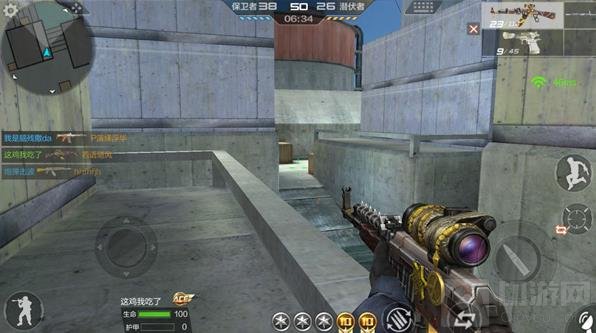 除了在平台尽头攻击敌人以外,还可以选择在围墙中间的缝隙位置瞄着敌人一侧的拐角位置。这个位置的话只有非常小的一个视野,但是却可以看到每一个经过的敌人,所以比较考验小伙伴们的手速了。如果枪法比较好,反应速度比较快的话可以用狙;如果技术一般的话建议还是用步枪。