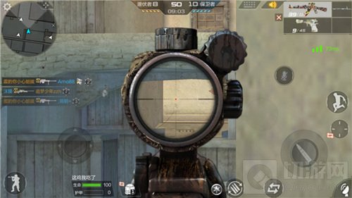 右侧小道的地形要比左侧小道复杂一些。首先,我们可以选择在出生点右侧的房子里用狙对枪,这里建议的瞄准点位有两个,一是地面门口的位置,二是右上角的窗口位置。门口的敌人很容易解决,但是如果窗口有敌人的话,我们就相对处于劣势了。因为窗口的敌人只露出头部,而我们露出上半身,所以相对来说我们更难命中敌人。