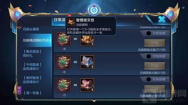 兑换商店已经限时开启,将在6月5日永久结束兑换,这个活动奖励还是非常丰富的,不要忽略了自己背包中的活动道具。疯狂碎片可以兑换皮肤碎片、英雄碎片,而勇者徽章则可以兑换高级铭文,一口气就换了27个3~5级铭文,这也是一笔大资源。