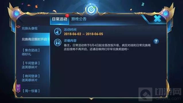 其次,正式服将进行日常活动大改版,勇者徽章与疯狂碎片活动将在6月5日晚上12点永久下架,如果还有这两样道具的玩家,尽快前往兑换商店进行兑换。