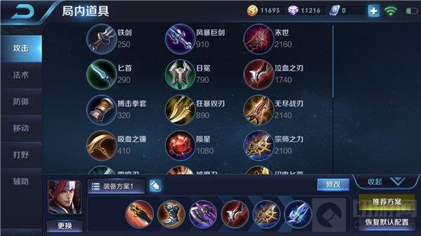 出装分析: 追击刀锋提高了韩信的发育效率,让韩信可以通过击杀野怪提升自身的攻击速度,增加韩信的战场输出;急速战靴增加攻击速度和移动速度,提高了韩信的战场输出和机动性;暗影战斧增加物理攻击和生命值,缩短技能冷却时间,加强的韩信的作战能力,被动切割和残废提升了韩信的抓人能力;泣血之刃增加物理攻击和物理吸血,保证了韩信的续航能力;宗师之力提高物理攻击和暴击率,并增加生命和法力值,被动强击能使韩信通过施放技能,提高自身的瞬间爆发,增加击杀;名刀·司命增加物理攻击,缩短技能冷却时间,被动暗幕提高了韩信的生存能力。