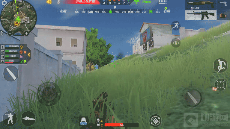 1、选择一个植被茂盛或靠近石头树木的点位蹲点。注意,尽量趴着,不要发出任何的动静。其次,应时刻关注小地图的动静,做到对周围的情况了如指掌。