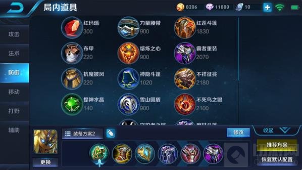 出装:救赎之翼、疾步之靴、极寒风暴、魔女斗篷、反伤刺甲、霸者重装