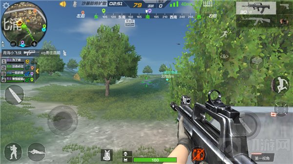 虽然公路上出现敌人的可能性很大,但我们不能把全部的防御力量布置到这里,因为毕竟军事基地位于我们的东部偏南的位置,如果敌人采用徒步的方式向我们这里进攻,那么根据两点之间直线最短的远离,如图3所示的位置出现敌人的可能性也很高。在图中我们能够看到军事基地的外围情况,好在这片区域比较开阔,敌人很难隐藏,所以防守压力也不是很大。