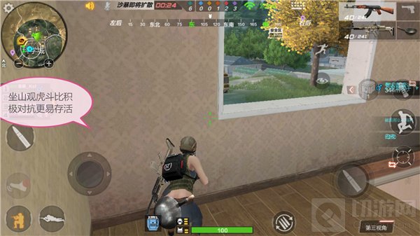 2、在确认场中除本方外仅剩一人(位置不确定)后,小队可分出一位队员作为诱饵(兼顾搜点),吸引敌人主动攻击,进而为其他队友提供机会。注意,不要一骨碌的集中在一起,否则或有可能阴沟里翻船。
