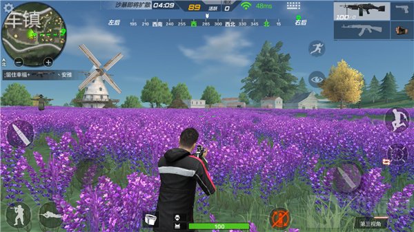 在生存特训模式的绿地120人对战中,风车镇作为物资较为丰富的一个点,引起了大多数玩家的注意,一旦出现敌人则很有可能影响我们搜集物资的速度,然后甚至还有可能对我们造成击杀,这个时候我们就需要利用建筑物进行防守。
