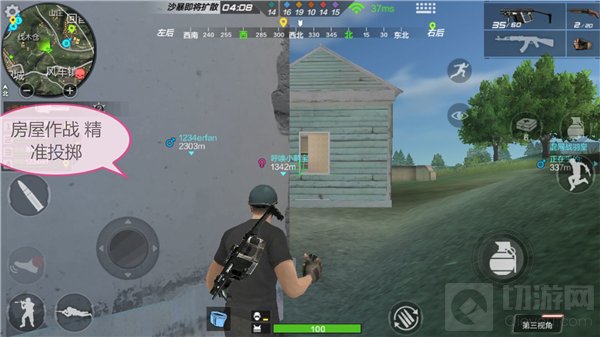 反之,小伙伴如果手持枪械向小房屋挺近,敌人或可能凭借地利优势提前对行进中无任何掩体掩护的小伙伴实施打击,发生意外的风险性高。因此,手雷攻势更显优势。