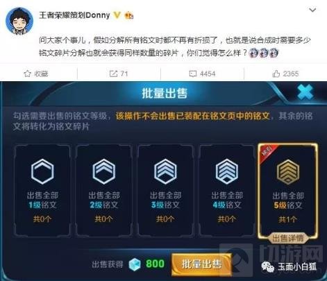 除了解决铭文找回的问题,铭文属性也将迎来第一次调整,之前是鉴于玩家收集五级铭文过于困难,所以策划不忍下手,也怕玩家去社区闹腾。其实游戏有许多铭文毫无存在感,几乎没有玩家会去合成,比如抗性铭文:灵山、霸者、均衡。如果一旦分解无损耗,那么铭文属性肯定就会被调整,这样也不会影响大家的体验,只需要分解再合成,即可解决铭文属性调整的问题,大家都是在同一个起点。
