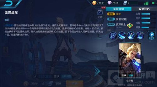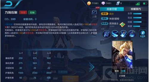 解析:狂铁在普攻或技能命中单位后会为自己叠加能量,当能量达到一定的数量后可以强化自己的技能,对敌人造成额外的伤害效果,不过在脱战后能量会逐渐的减少。根据该技能,狂铁在实战中要注意对能量的叠加,这样在团战中可以打出额外的伤害和技能效果,而且他击打小兵或敌人回复能量数值的差距并不大,所以可以利用小兵来快速的叠加能量。