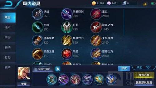 【名刀·司命】:最后选择名刀·司命,利用被动免疫致命伤害的效果让狂铁的生存容错率更高,在先手开团时也能毫无压力;如果追求稳定也可以将其替换为更为稳妥的的贤者的庇护。