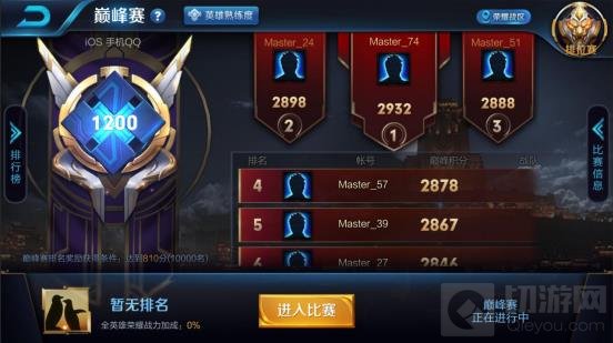 当满足以上条件之后,玩家即可参与巅峰赛。