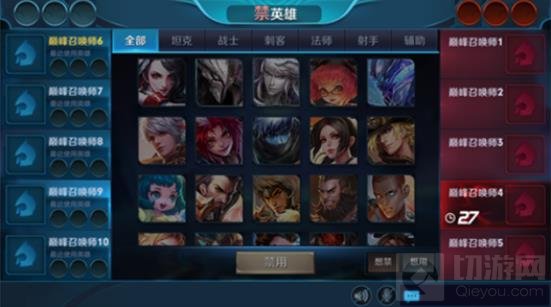 2. 为了使比赛更具竞技性,巅峰赛中每方玩家能够禁3名英雄,由双方的3,4,5楼玩家交替禁用