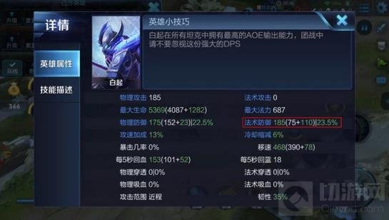 也即是说,白起到达四级,会拥有75法术防御,假如这时候再拥有一个抵抗之靴的话,法术防御会直接到达185,能减免23.5%的魔术伤害。