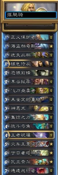炉石传说狗头人目前圣骑士的快攻很强力,4费的战斗号角和新快攻神卡通道爬行者的真的强!今天给大家推荐一个圣骑士的最新版报告摸腿骑,真的强无敌,快速低保不是梦!