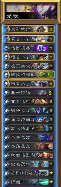 炉石传说新资料片《狗头人与地下世界》现已开放,下面就给大家推荐一套新卡组——狗头人龙牧,在旧版本基础上加入了破晓之龙这个强力清场随从,同时带上了新卡暮光侍僧这张控制牌,整体强度不错,大家不妨试试!