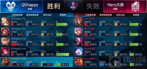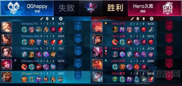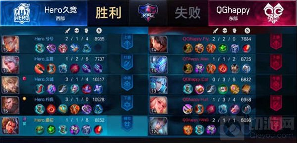 Game 4:QGhappy蓝色方,Hero久竞红色方