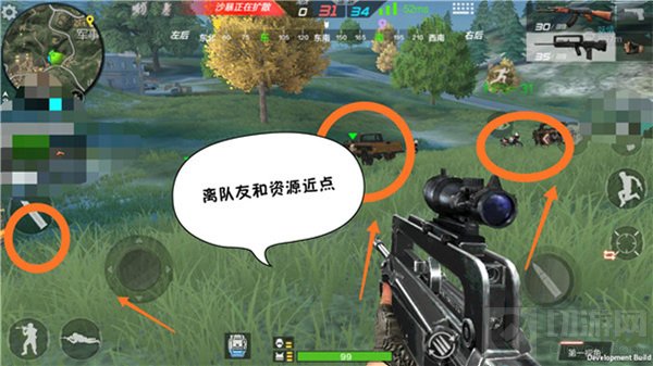由于FAMA步枪自身配备有瞄准镜头,而且其自身的发射轨迹趋向稳定,所以我们可以拿着这把枪在空投物资旁边防守。不过,我们要注意这把枪4颗子弹停顿一次的情况。如果敌人靠近时我们刚好遇到了这个点,我们可以往物资方向后退,同时开镜头瞄准眼前活动的敌人,然后再上前攻击; 而当敌人开着车跑过来时,我们利用有限的子弹打准车位,尽力把敌人打残血,顶不住火力的话我们可以往山坡或房子密集的地方跑,暂时掩护一下自己。
