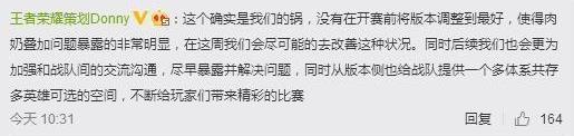 对于目前游戏这样的平衡性,王者荣耀策划Donny今日在微博中回复:这个确实是我们的锅,没有在开赛前将版本调整到最好,使得肉奶叠加问题暴露的非常明显,在这周我们会尽可能的去改善这种状况。同时后续我们也会更为加强和战队间的交流沟通,尽早暴露并解决问题,同时从版本侧也给战队提供一个多体系共存多英雄可选的空间,不断给玩家们带来精彩的比赛。官方终于表示要调整肉奶叠加的问题了。
