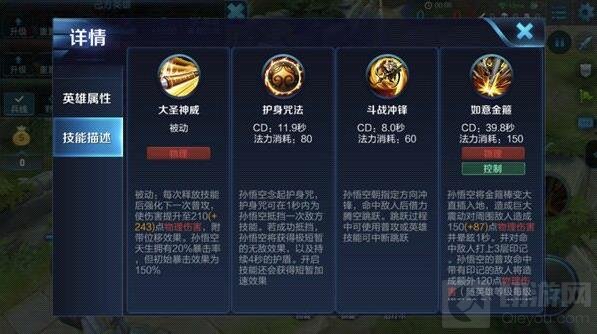 解析:孙悟空每次释放完技能之后将会强化下一次的普通攻击,同时附带一定程度的位移效果。该技能不能称之为孙悟空的主要输出技能,但却是孙悟空的核心技能,主要伤害来源。孙悟空强化后的普攻伤害受物理攻击力的影响,与物理攻击力成正比,物理攻击力越高也就意味着普攻伤害越高,这一点决定了孙悟空是一名后期英雄,对于装备的依赖程度很大,游戏的前中期是他的疲软期。释放技能后附带的一定的位移能力并不稳定,只有向敌方英雄攻击时才会触发,这使得孙悟空的追击能力极强,可以理解为三段位移,且在逃跑时也可以巧妙的利用野区的野怪,亦或是兵线来触发位移效果,灵活多变。同时,该技能使得孙悟空天生自带一定的暴击几率,这在提升孙悟空输出能力的同时也是一种制约,因为也降低了孙悟空先天的暴击效果,降低了孙悟空前期的输出能力。但可以通过一定的装备解决。