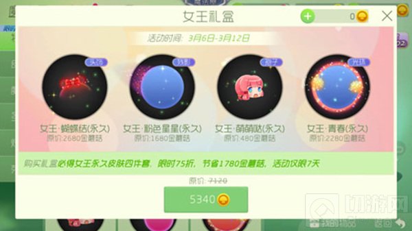 为了迎接女神节的到来,球球大作战专门为女王订制了专属皮肤,穿女王的新衣,做漂亮的自己,对自己好一点总是没错的。下面我们一起看球球大作战女王礼盒都有哪些皮肤吧! 活动开启时间为3月6日至12日,在活动期