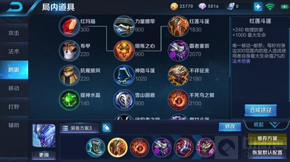 白起核心装备推荐:不死鸟之眼、霸者重装。