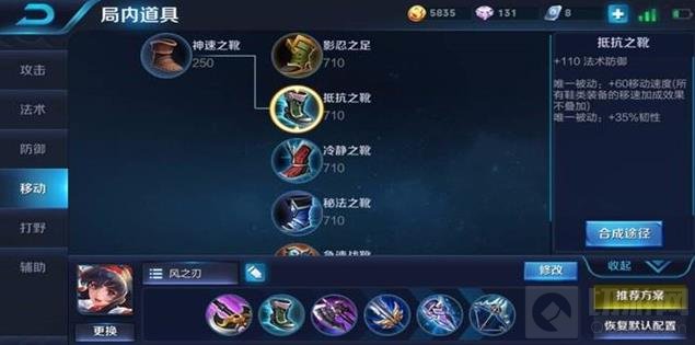 抵抗之靴,提升娜可露露的移动速度和法术防御,35%韧性可以减少被控制英雄的控制时间。