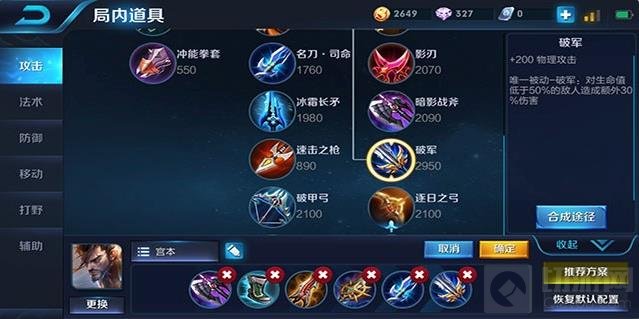 这套装备能够保证宫本武藏在当前版本依然能够打出高额的伤害,对对手的后排带来压力,但不足在于自身太脆,一旦被控制就容易被对手击杀。
