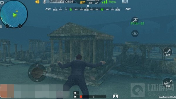 在无法去山上搜装备时!玩家只能通过下潜进入海水之中寻找强力武器!这样才能与敌人战斗!但要提醒各位玩家的是下潜是有肺活量这一说法的!如果肺活量清空,人也会跟着死亡!