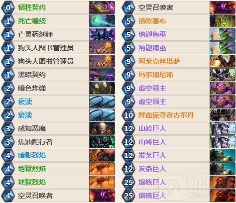 这套卡组的玩法较为简单,即使没有玩过巨人体系的童鞋多打几把也能熟练掌握了。起手无脑留娜迦海巫,对阵快攻留122、亵渎、地狱烈焰还有焦油。一般不是脸特别黑的五六费就能铺一地的巨人,下个回合直接踢死。感知恶魔也能配合空灵拉939或者二王。小tips:打奥秘法五费一定要防一手爆炸;打慢速的德鲁伊要防一下剧毒之种,不要铺太多的巨人;打魔块术一定要解掉安布拉。