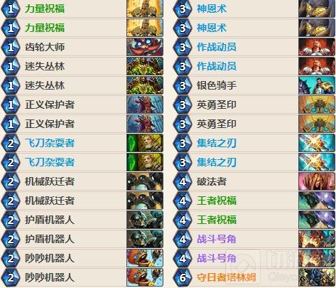 由于狂野环境中宇宙牧的削弱,导致现在的宇宙体系卡组几乎遇不到。而这套机械骑带了两张力量祝福和两张应用圣印,就是为了抢血量,圣盾随从对方也不太好处理。快攻内战利用圣盾和buff白吃对方的随从,打术士起手留破法,抢血量,地狱烈焰和亵渎能防尽量防一手。对阵德鲁伊防一手传播瘟疫。这个版本沉默的效果远远超过了一点费用,也可以去掉一张英勇圣印换成双破法,看个人喜好来定。