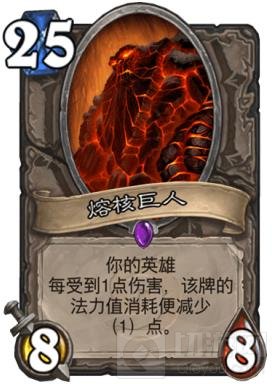 进入荣誉室的最后一张卡牌是熔核巨人,这张牌曾经经历过一次修改,由20费改为25费,在修改之后这张卡就很少能进入卡组构筑了(除了元气骑和巨人术等非主流套牌)。这次熔核巨人暴雪又将其改回20费,在我看来意在让这张卡重新能够进入构筑(但只能在狂野模式)