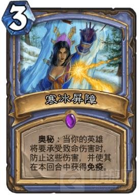 其次我要讲到的是法师职业奥秘寒冰屏障,这张牌的机制算是一些后期法师套牌的核心牌,基本上除了疲劳和针对卡牌这张卡最少会为法师赢得一回合的时间。