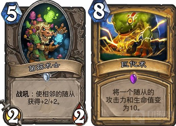 这副套牌和巨化术的那版本的基本差不多,巨化术报告骑的优点是带了1张巨化术和2个菌菇术士,在对面AOE多的时候,你可以用菌菇术士迅速BUFF两侧的报告兵,然后进行随从交换或者抽脸,而且巨化术立刻造个大怪,让对面(尤其是恶毒龙牧)没有防备之下猝死。