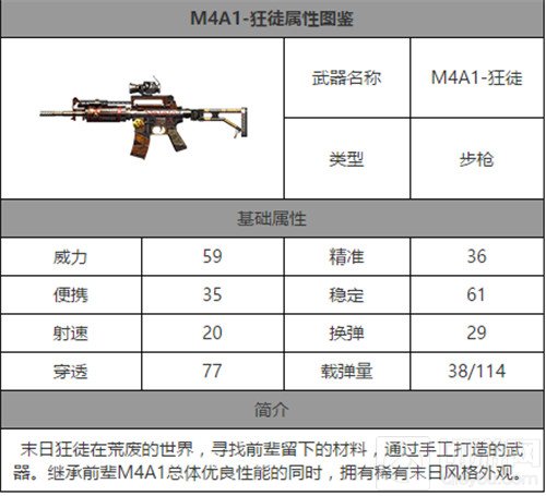 以上就是为大家带来的CF手游M4A1狂徒属性图鉴分享,更多精彩,请继续锁定。